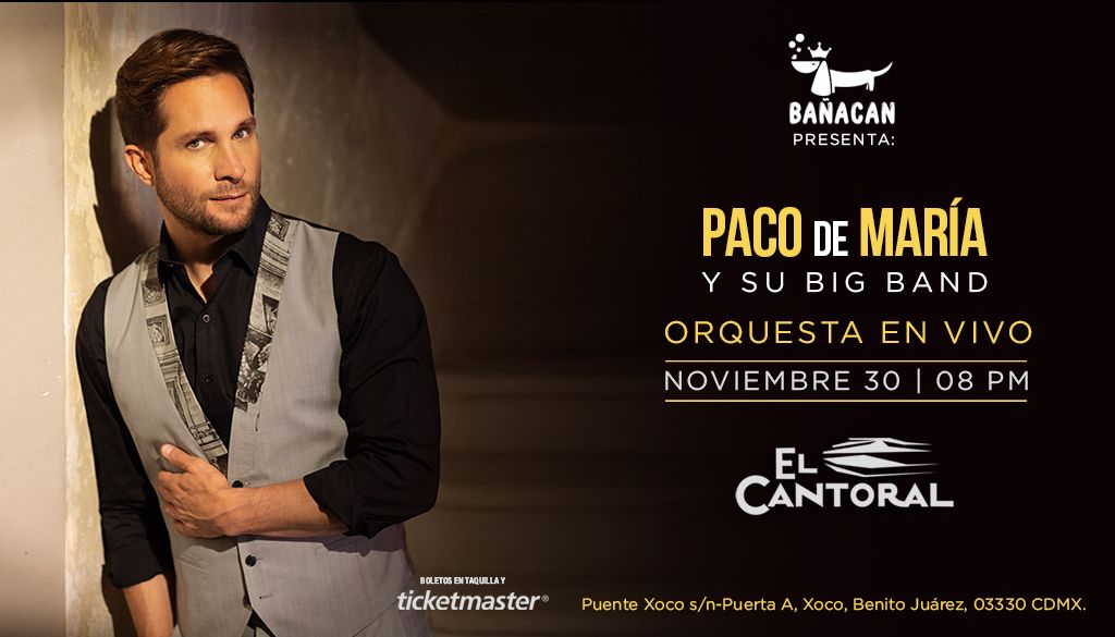 El legado, el talento vocal e interpretativo de Paco de María se unirán el próximo 30 de noviembre de 2024 al filo de las 20:00h en el recinto que alberga a los músicos y compositores de México, El Cantoral, ubicado al sur de la Ciudad de México. En esta velada, la voz del Big Band en México nos dará un recorrido por sus éxitos y su nueva producción en compañía de su orquesta y por supuesto, de su público.